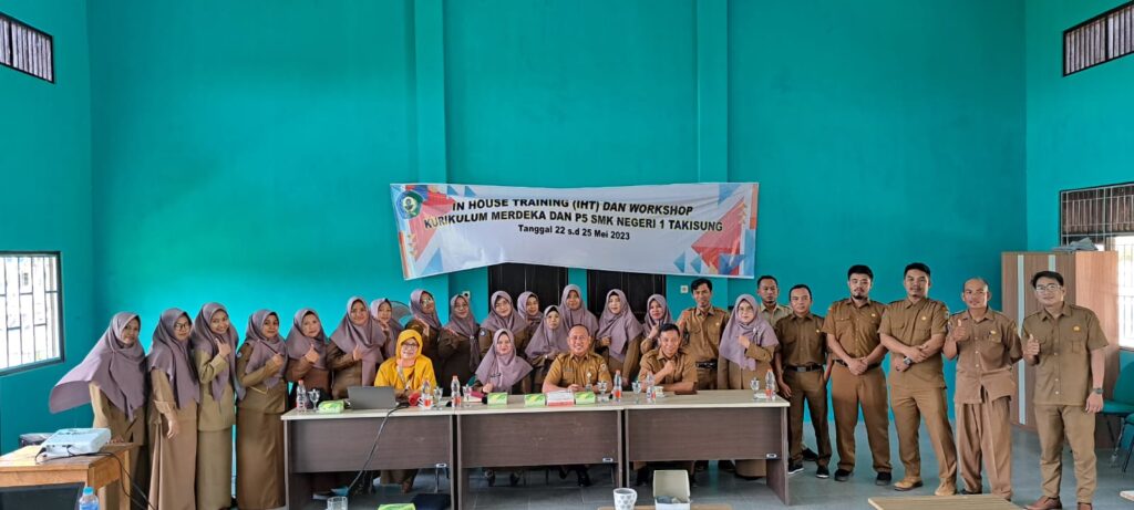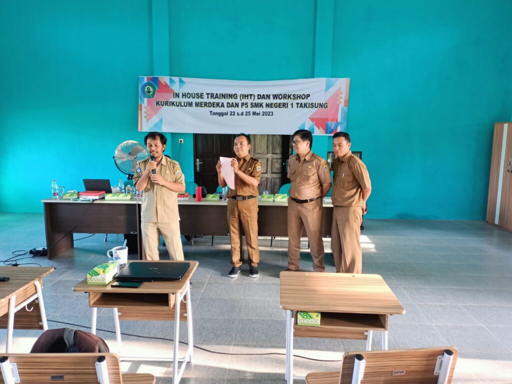 IHT dan Workshop Kurikulum Merdeka dan P5 SMK Negeri 1 Takisung dilaksanakan pada tanggal 22 s.d 25 Mei 2023 dihadiri seluruh Guru dan Tenaga Kependidikan SMKN 1 Takisung yang dibuka langsung oleh Kabid PTK Dinas Pendidikan dan Kebudayaan Provinsi Kalimantan Selatan.